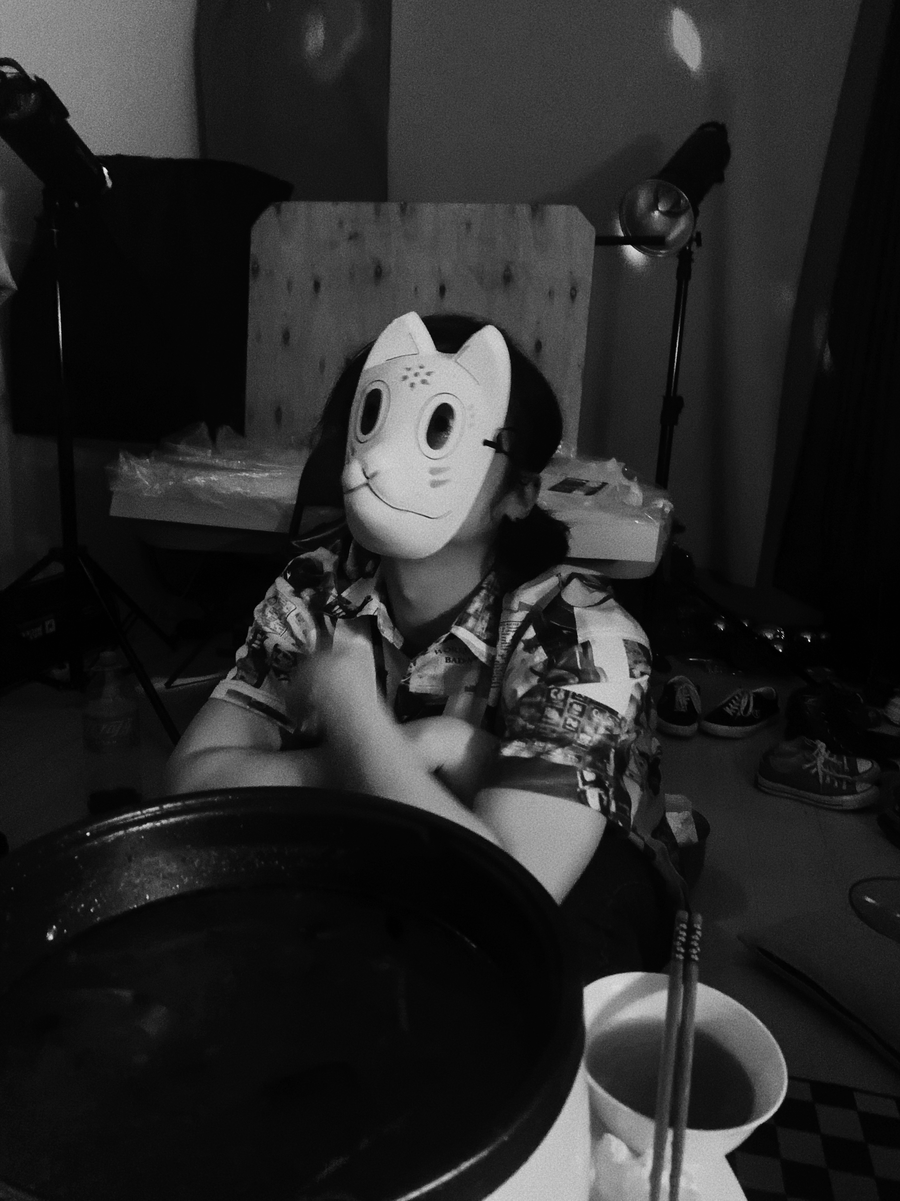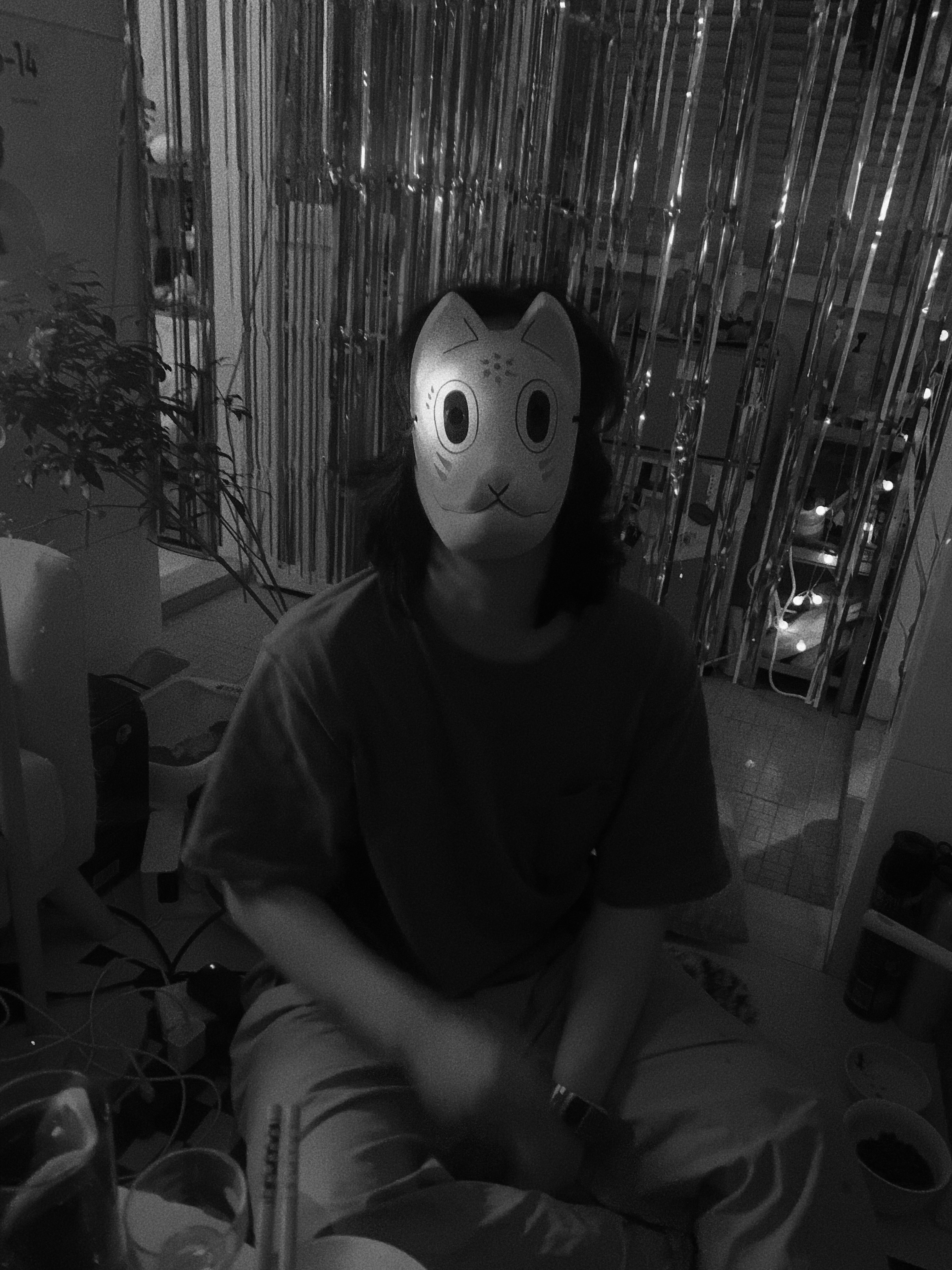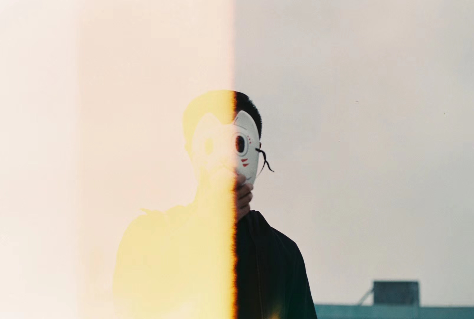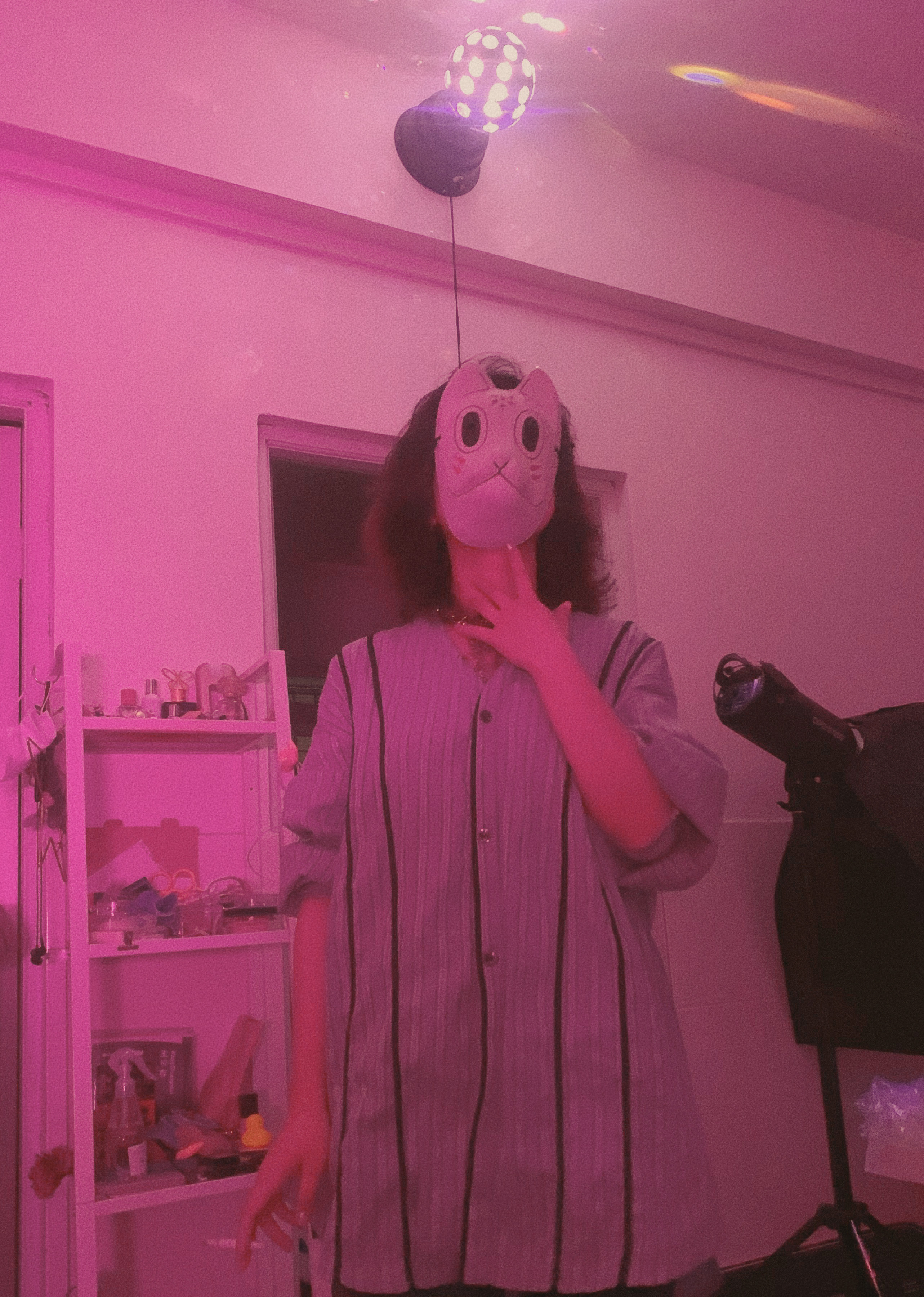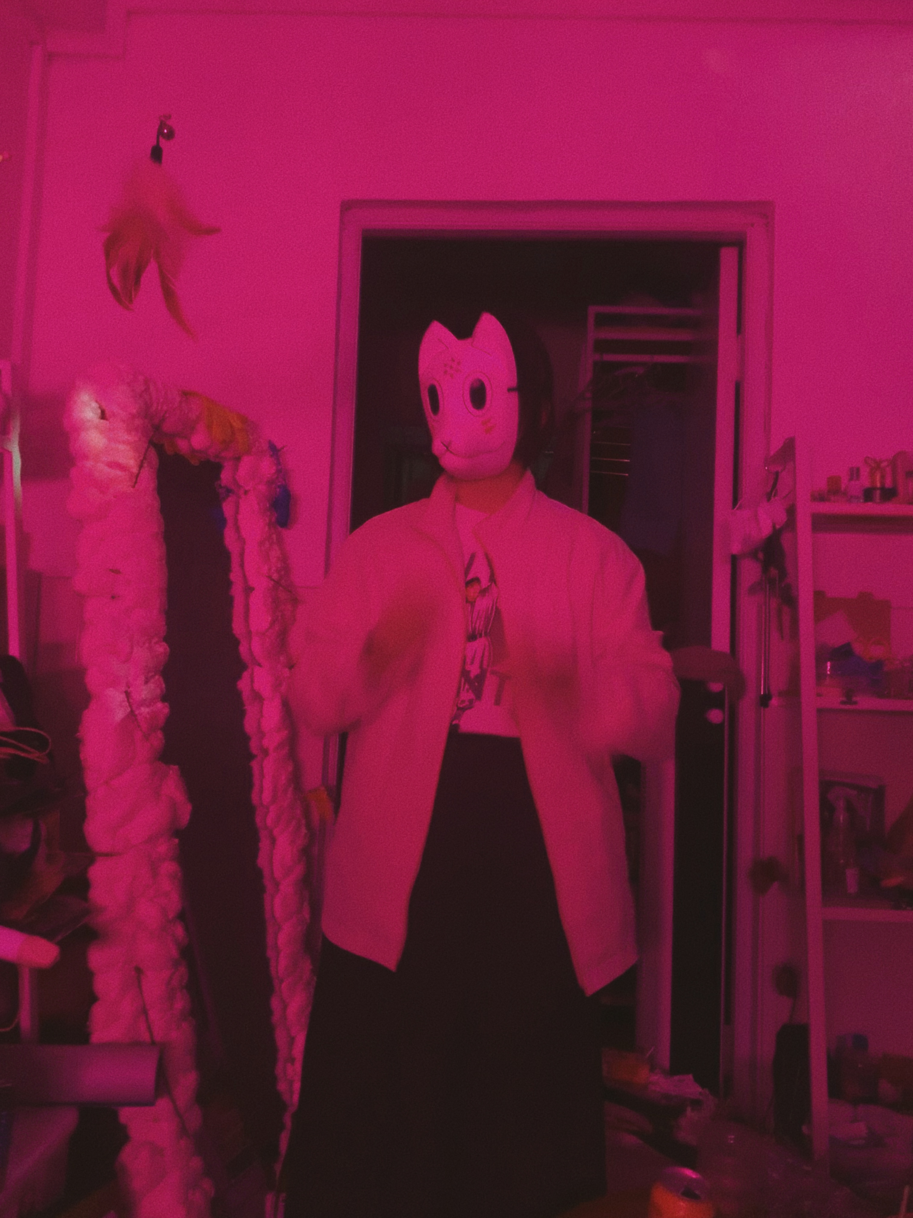 最开始的设想是人是不断变换的多面体,每个面相都是真实自我的一部分,所以开始了做这件事。这个面具是我大学时买来cos用的,想着不必浪费,就直接使用了。