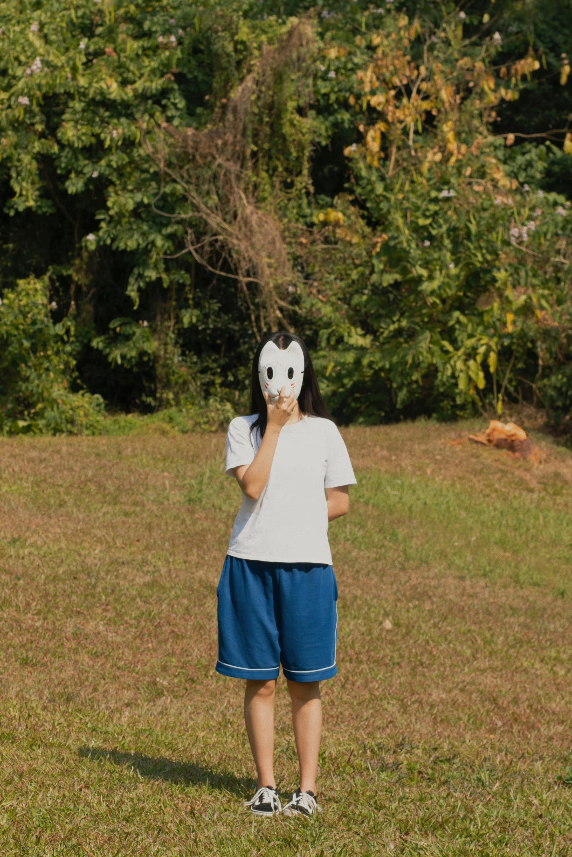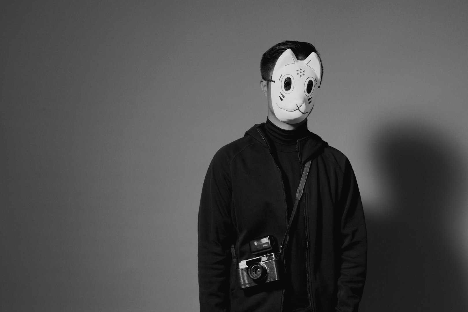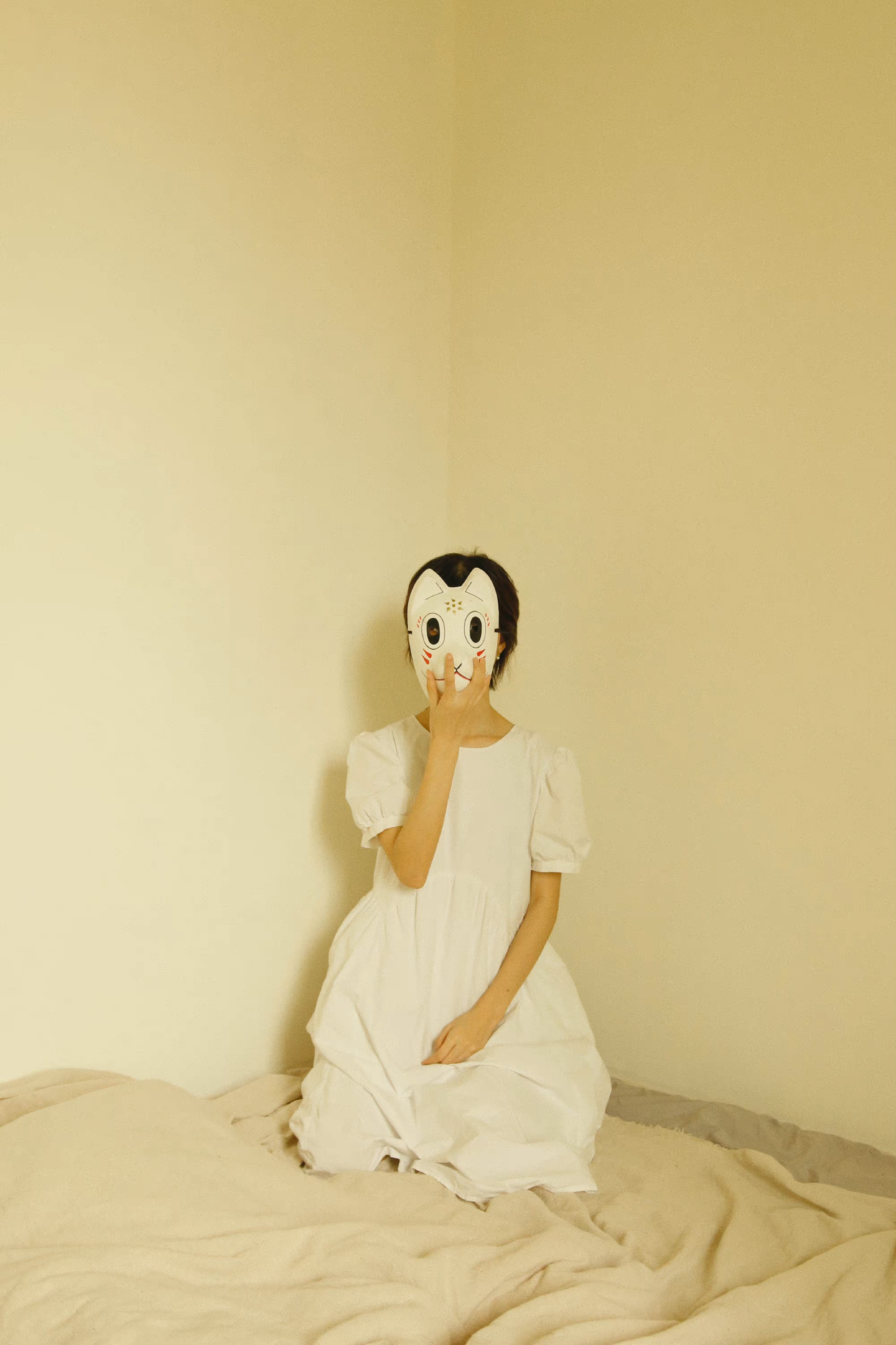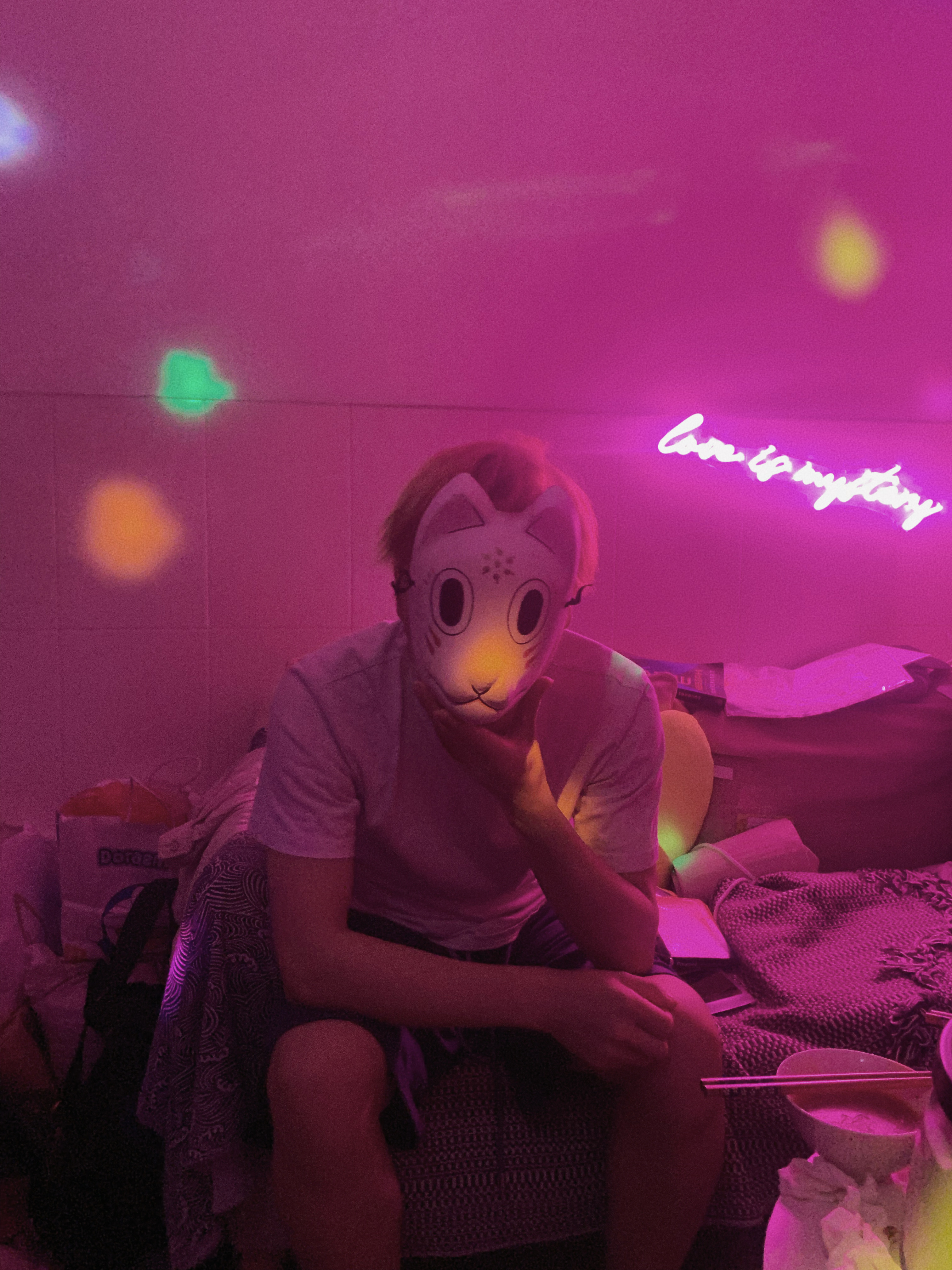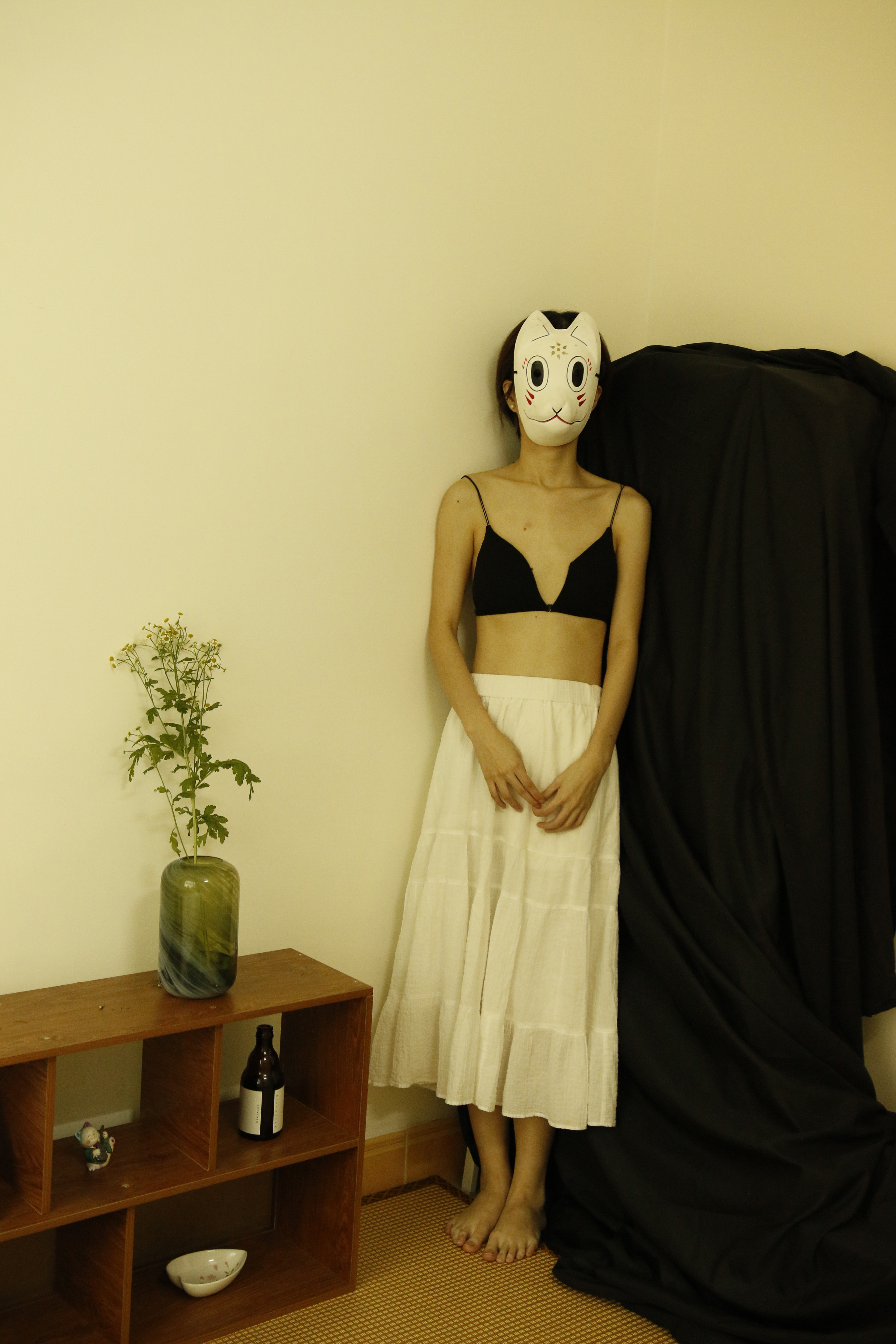最开始的设想是人是不断变换的多面体,每个面相都是真实自我的一部分,所以开始了做这件事。这个面具是我大学时买来cos用的,想着不必浪费,就直接使用了。