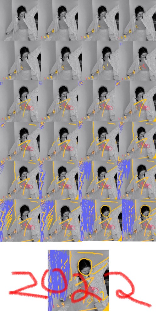 事情是「4月的时候,我突然想在黑白色头像上记录时间,像个行走的日历,觉得到年末了,把头像凑在一起应该会很好玩,6月的时候想在上面记录情绪,于是整个画面开始变得乱七八糟了起来」。
