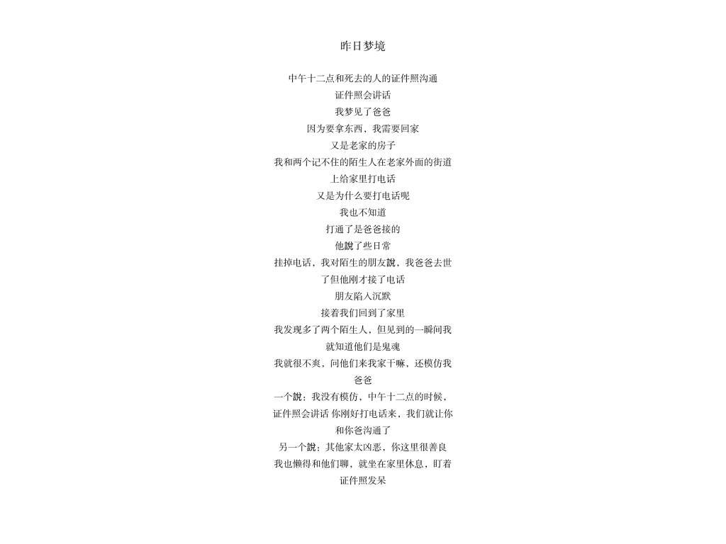 最近还做过一个梦境,关于爸爸,在梦里的爸爸。后来想来觉得还挺浪漫的。我倒是不怎么怕灵。可能觉得他们老是爱和我玩恶作剧吧。