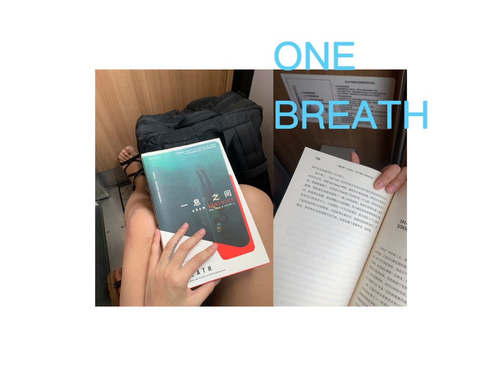 很喜欢在列车上的感觉,可以看风景,又可以低头看书的悠闲。时不时还有车体与轨道接触的声音。One breath中文译名是一息之间,关于Nicholas Mevoli,一个在2013年11月17日的Vertical Blue比赛里去世的人。看这本书前, 我以为仅讲述了那场比赛和Nicholas 如何接触free diving,以及如何训练自己,但后来我发现 —— free diving 只是他的一个人生片段,在获取这枚人生片段之前,他是一名演员,并在纽约的演艺圈和剧组待过,还参与制作了我初高中很喜欢的gossip girl。我看到了一个丰富立体的人。也看到了,有一些命定的天赋会一直伴随着你,直到某一天时机成熟,一切事件都会引领你走上去。